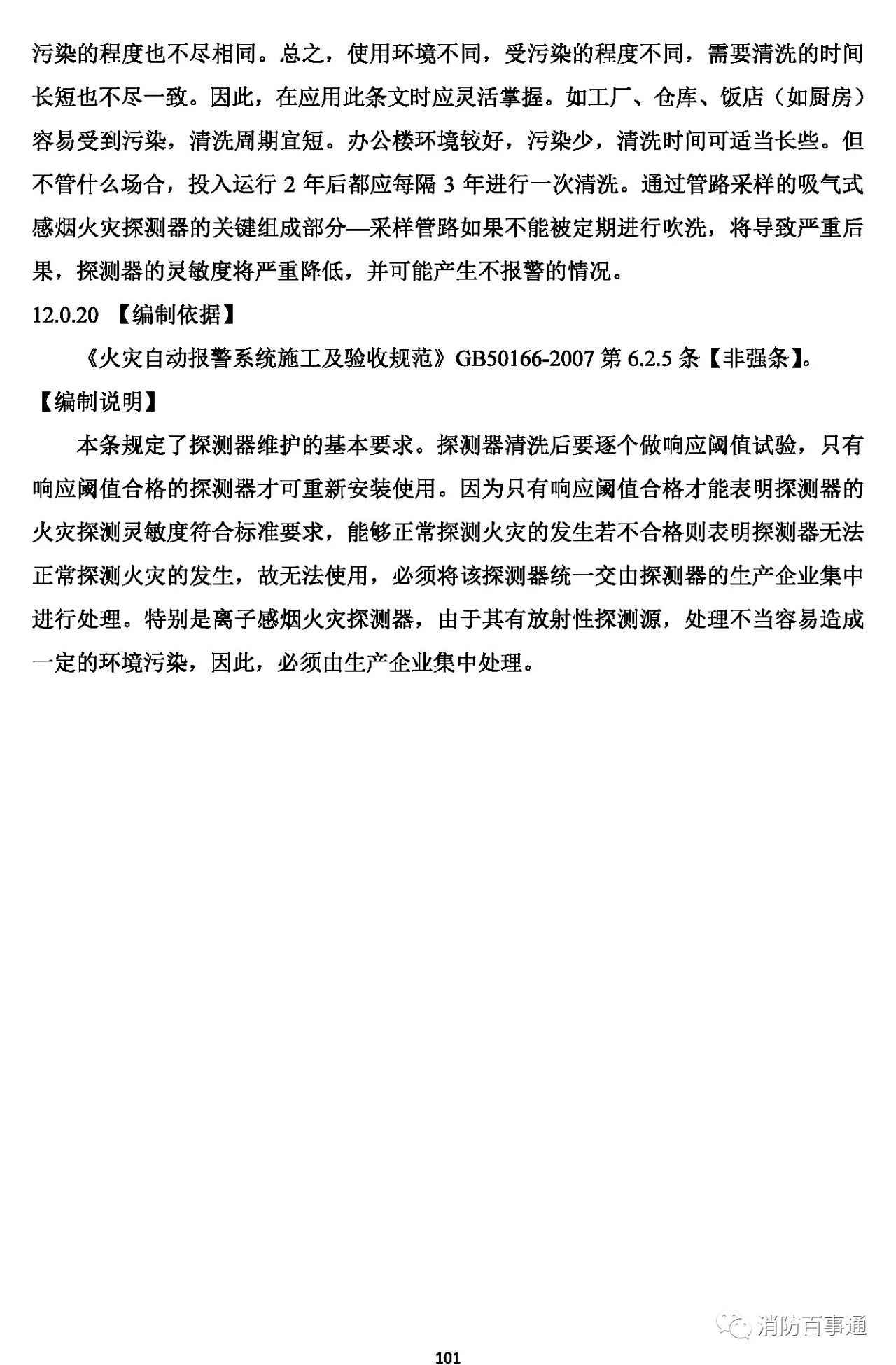12.0.20 探測(cè)器清洗后應(yīng)經(jīng)響閾值和其他必要功能試驗(yàn)合格后方可投入使用。嚴(yán)禁重新使用不合格的探測(cè)器,嚴(yán)禁隨意處置或丟棄離子感煙火災(zāi)探測(cè)器。