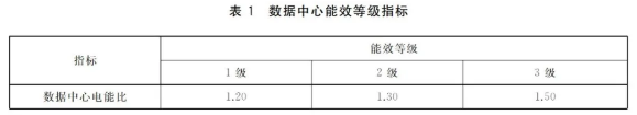 該標(biāo)準(zhǔn)規(guī)定了數(shù)據(jù)中心的能效等級與技術(shù)要求、統(tǒng)計范圍、測試與計算方法。數(shù)據(jù)中心能效等級共分為3級,1級表示能效最高;3級能效為數(shù)據(jù)中心能效限定值。