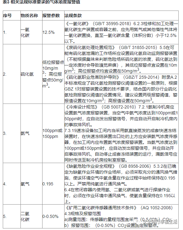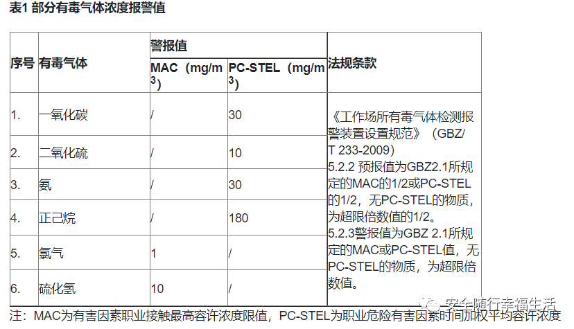 常見可燃、毒性氣體量程及報警值設(shè)定