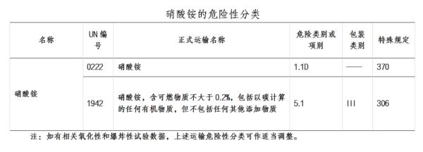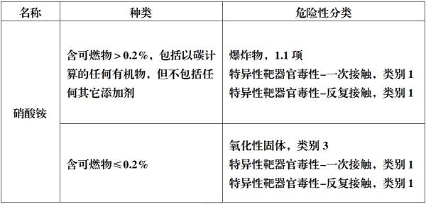 按照《危險(xiǎn)化學(xué)品目錄》(2015年),硝酸銨分為兩種,其危險(xiǎn)性分類(lèi)有: