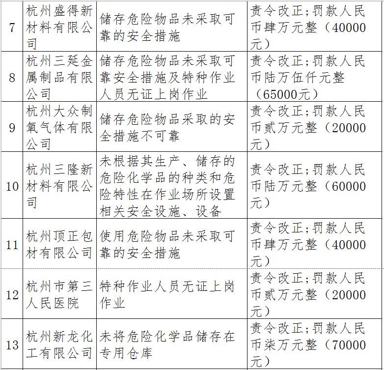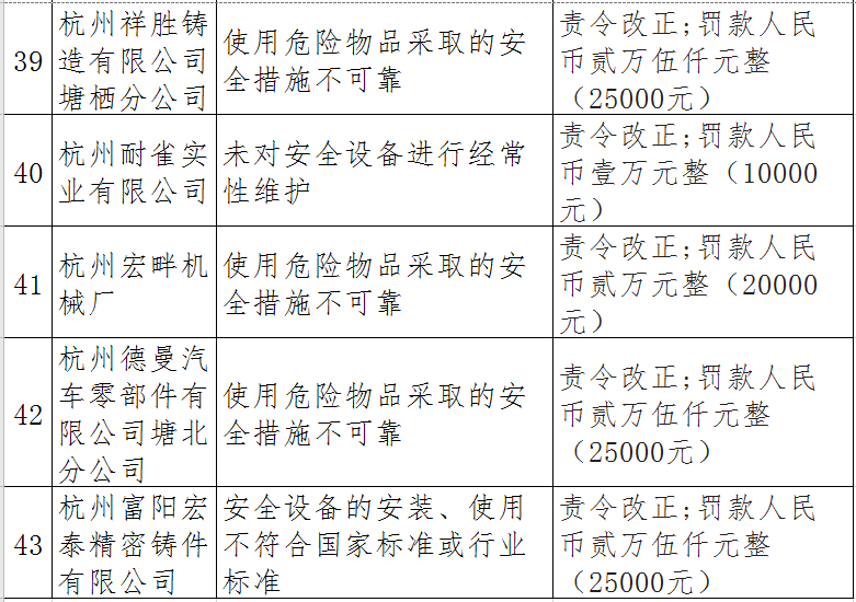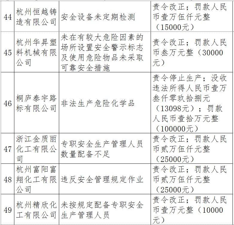 近日,杭州市應(yīng)急管理局對50多家被行政處罰的企業(yè)(個人)進行曝光