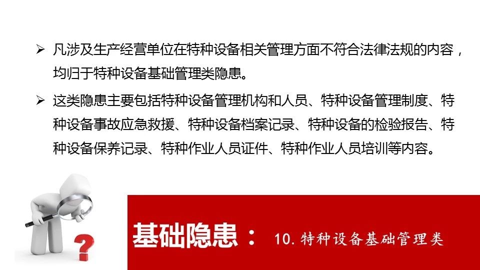 18 | 危險物品的容器、運輸工具,以及涉及人身安全、危險性較大的海洋石油開采特種設(shè)備和礦山井下特種設(shè)備未經(jīng)具有專業(yè)資質(zhì)的機構(gòu)檢測、檢驗合格,取得安全使用證或者安全標志,投入使用的 |