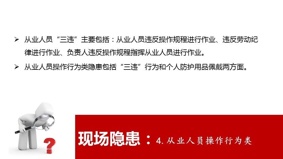 23 | 進行爆破、吊裝以及國務(wù)院安全生產(chǎn)監(jiān)督管理部門會同國務(wù)院有關(guān)部門規(guī)定的其他危險作業(yè),未安排專門人員進行現(xiàn)場安全管理的 |