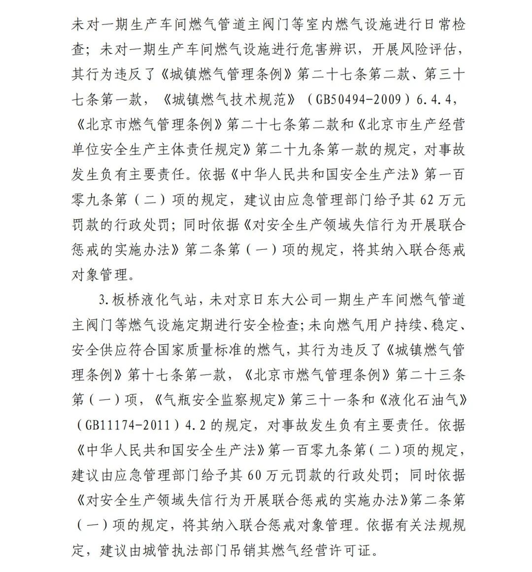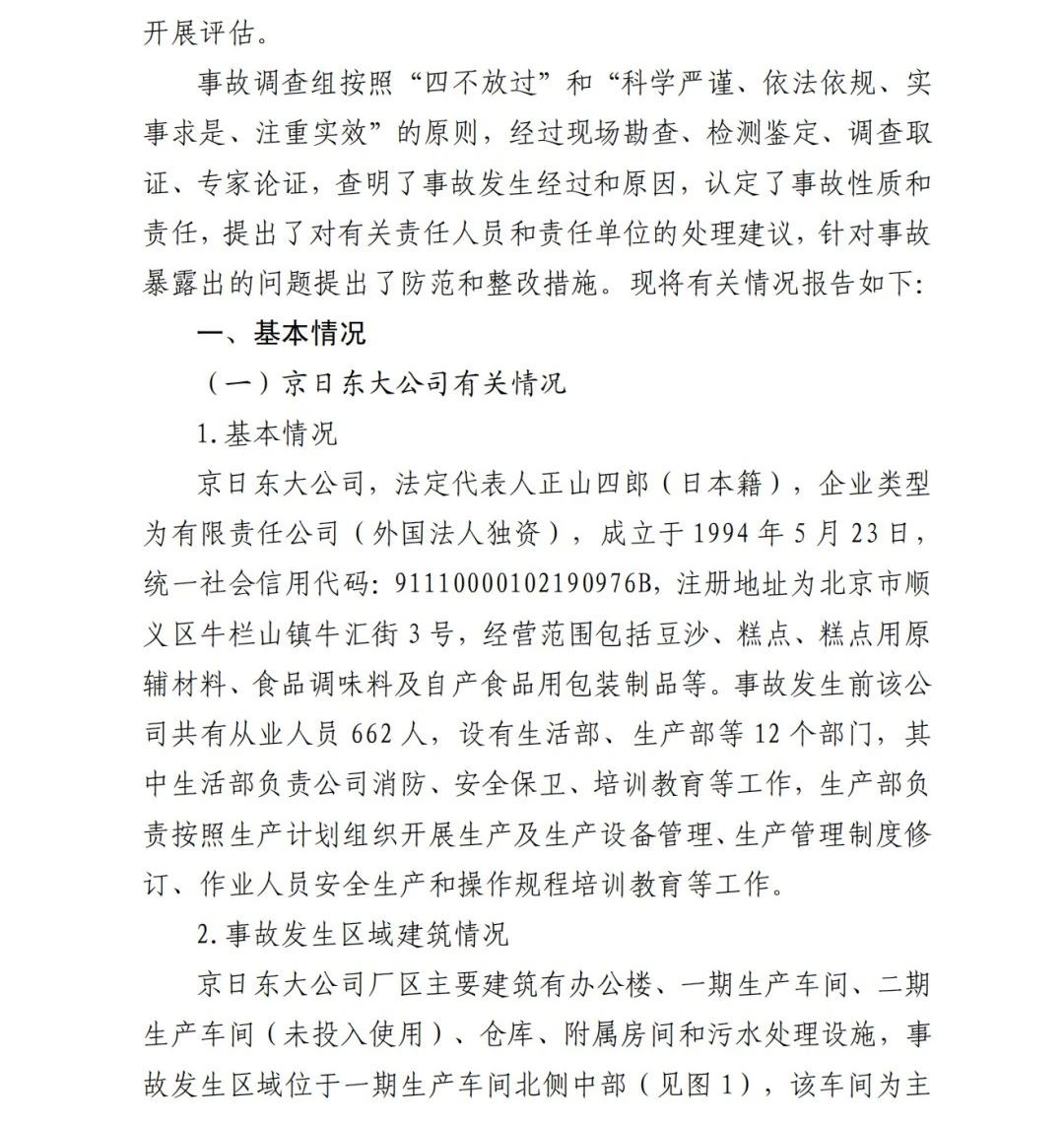 2019年12月3日2時(shí)43分許,北京順義區(qū)牛欄山鎮(zhèn)的(以下簡(jiǎn)稱“京日東大公司”)一期生產(chǎn)車間內(nèi)發(fā)生燃?xì)獗ㄊ鹿?,造?人死亡,10人受傷,直接經(jīng)濟(jì)損失1429.563萬(wàn)元。