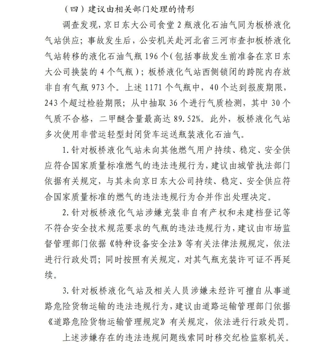 4.方勇忠,曾先后擔(dān)任京日東大公司生活部副部長(zhǎng)兼設(shè)備部部長(zhǎng)助理、設(shè)備部部長(zhǎng)、生產(chǎn)部部長(zhǎng)兼設(shè)備部部長(zhǎng)、總經(jīng)理助理(2019年4月辭職)。2006年負(fù)責(zé)京日東大公司一期生產(chǎn)車間建設(shè)工作,期間未委托具有相應(yīng)資質(zhì)的施工單位,組織本單位人員自行建設(shè)安裝燃?xì)庠O(shè)施,導(dǎo)致燃?xì)庠O(shè)施安全隱患長(zhǎng)期存在;2018 年負(fù)責(zé)一期生產(chǎn)車間內(nèi)新建冷藏庫(kù)建設(shè),將部分管道、閥門等燃?xì)庠O(shè)施封閉在通風(fēng)不良的場(chǎng)所內(nèi),且未設(shè)置通風(fēng)、燃?xì)庑孤﹫?bào)警等安全設(shè)施,對(duì)事故發(fā)生負(fù)有直接責(zé)任,涉嫌重大責(zé)任事 故罪。2020 年 1 月 23 日被順義公安分局刑事拘留,2 月 6 日取 保候?qū)?,建議依法追究刑事責(zé)任。