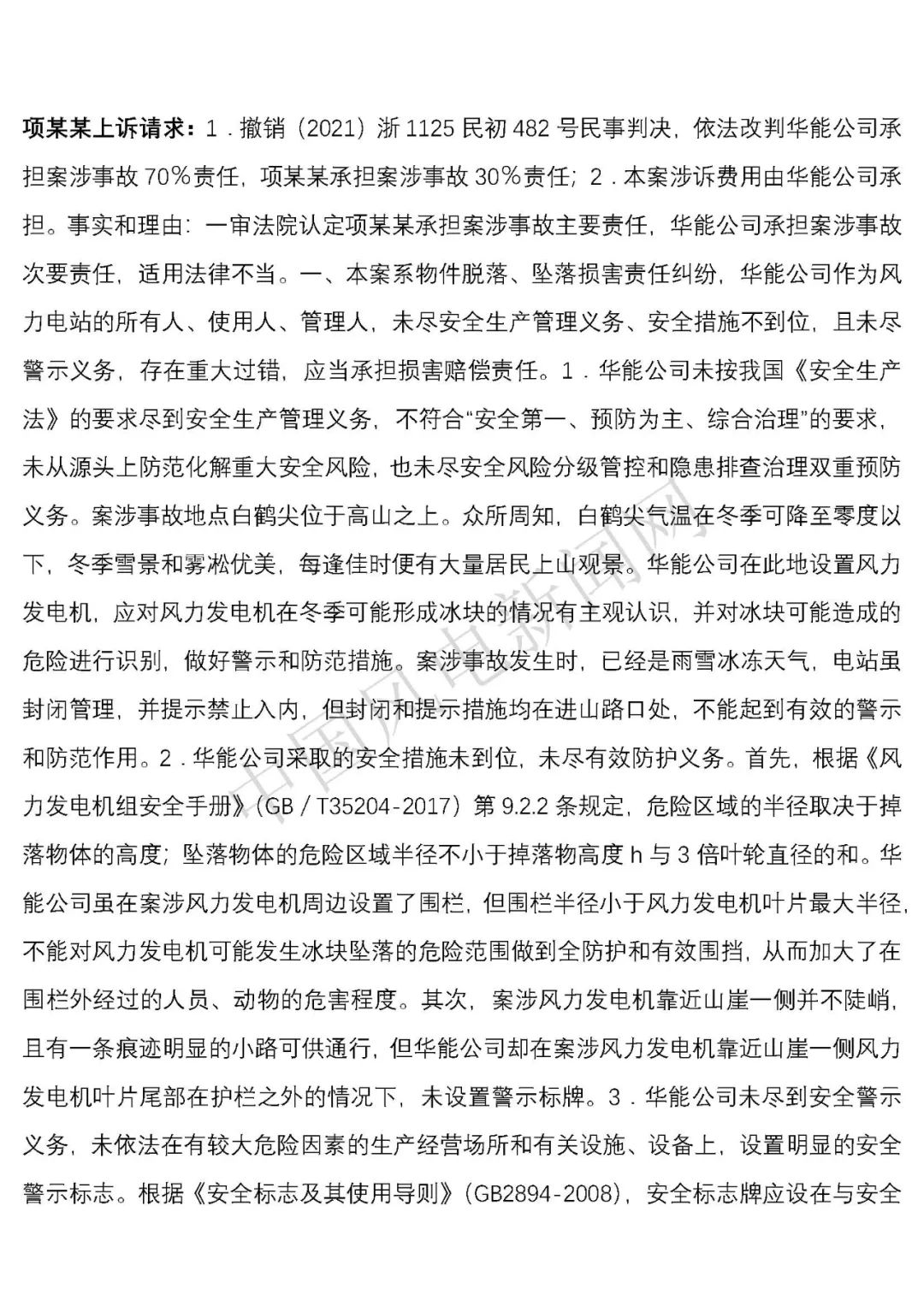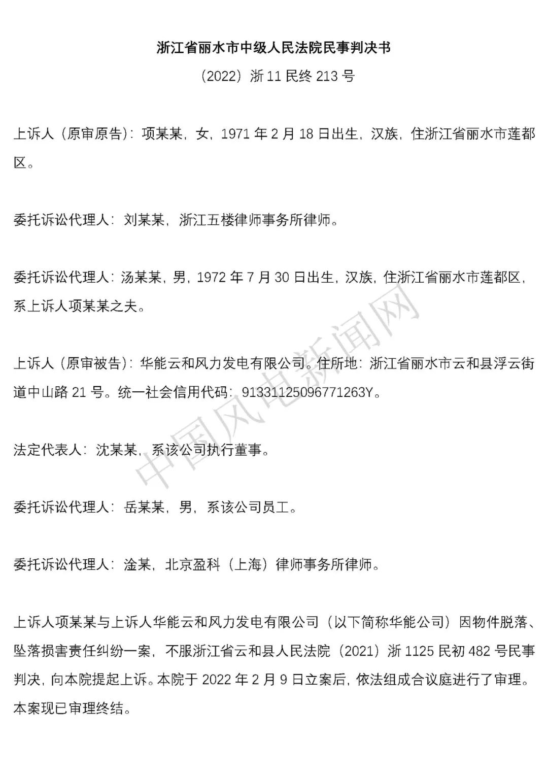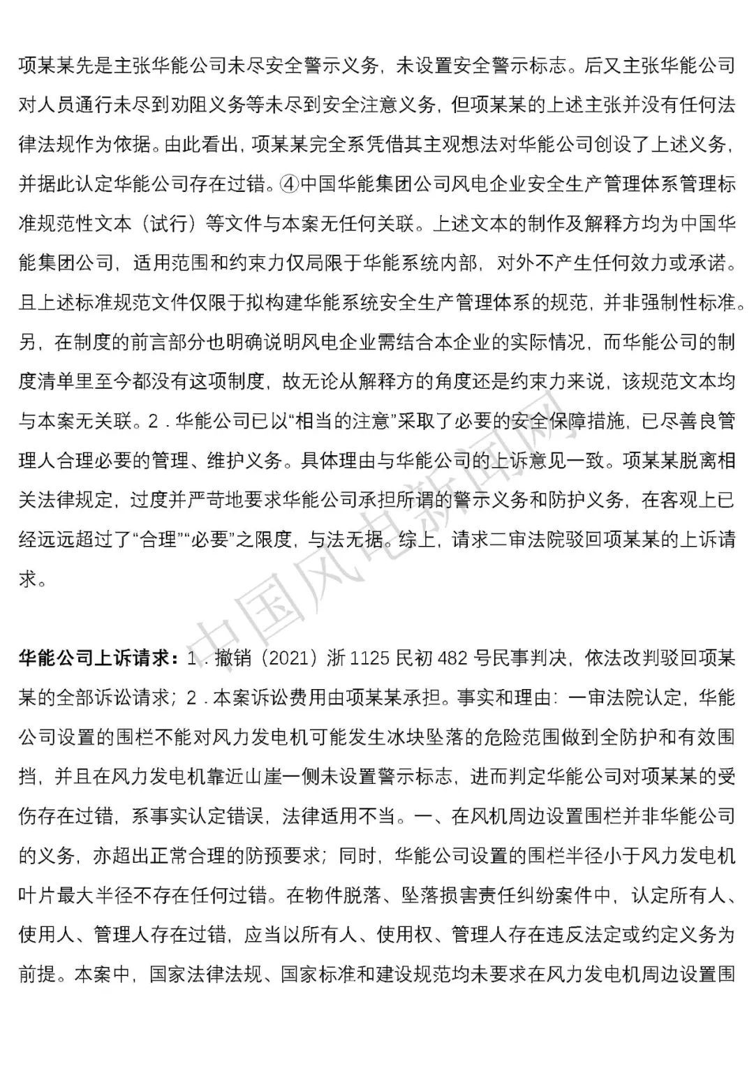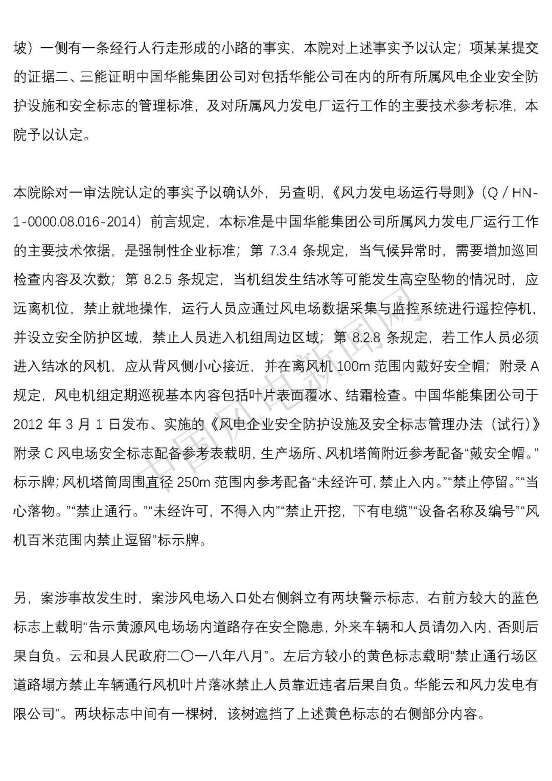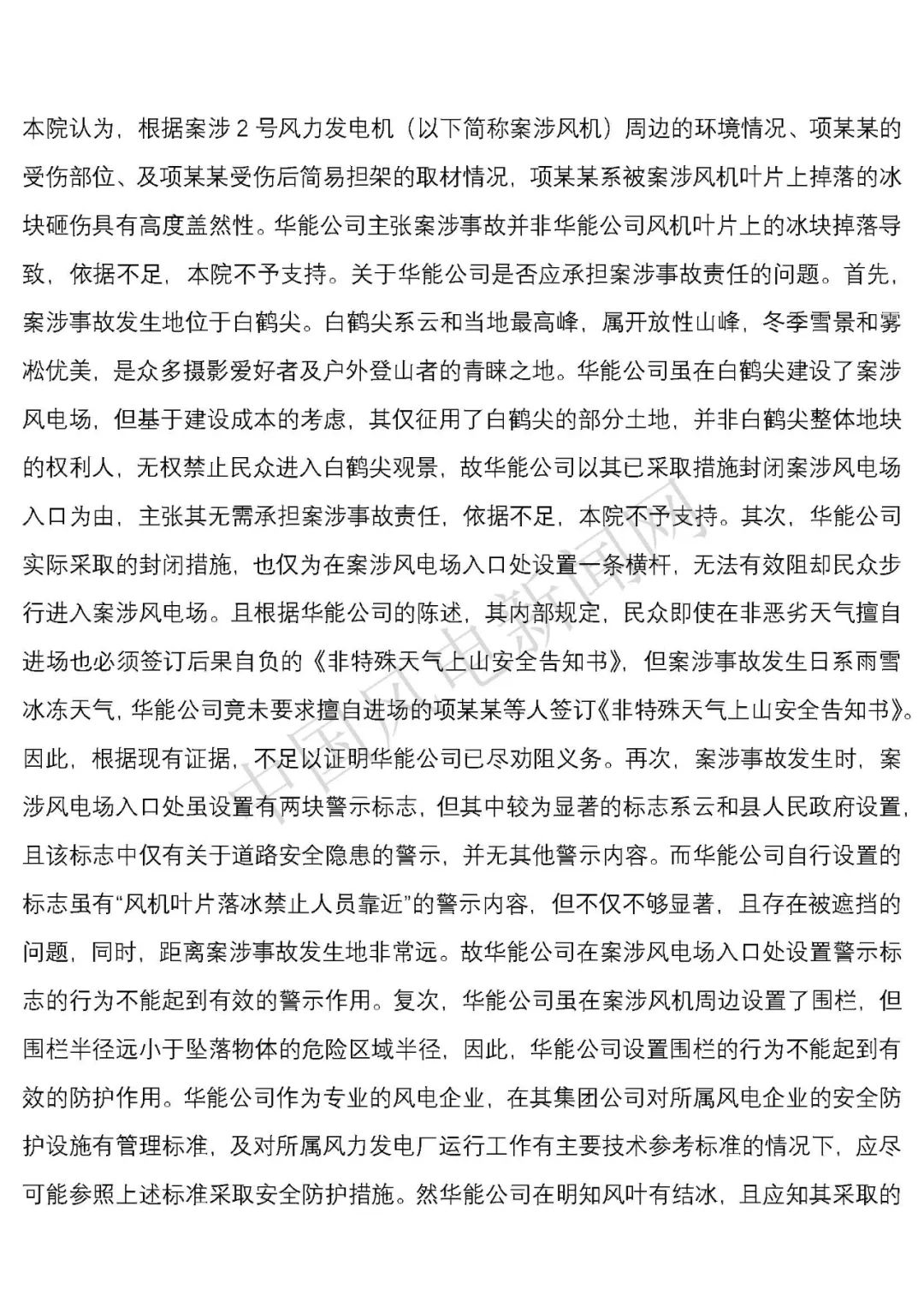 華能浙江某風(fēng)電場葉片結(jié)冰冰塊掉落砸傷路人案宣判